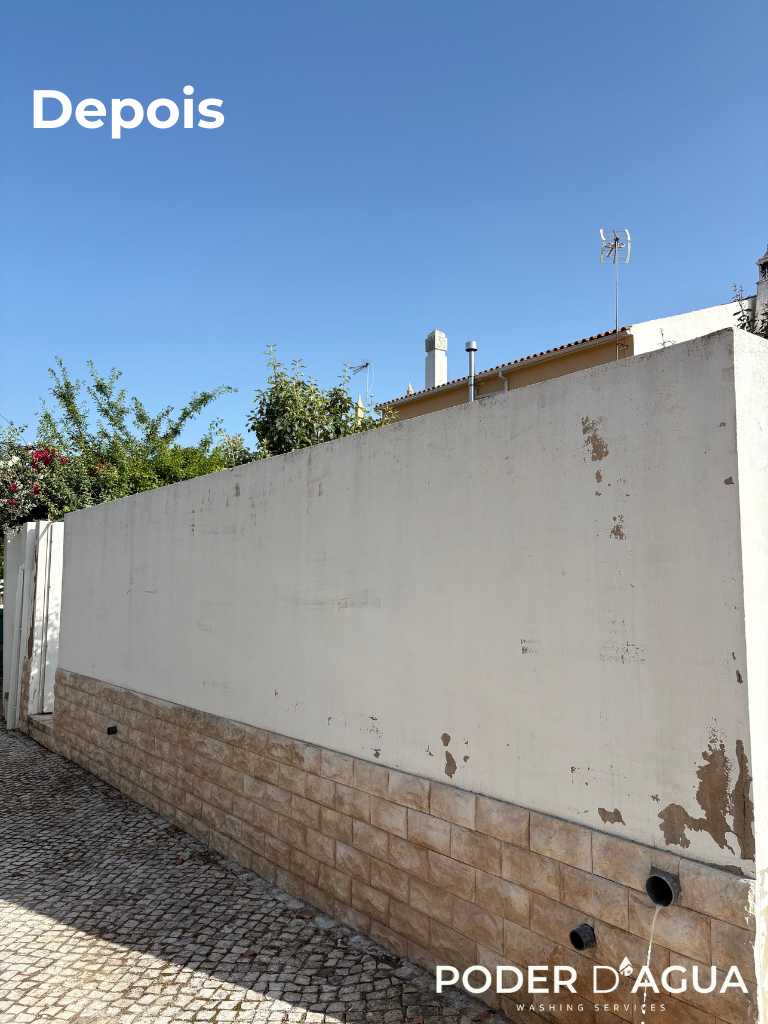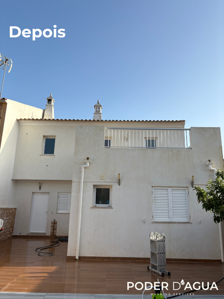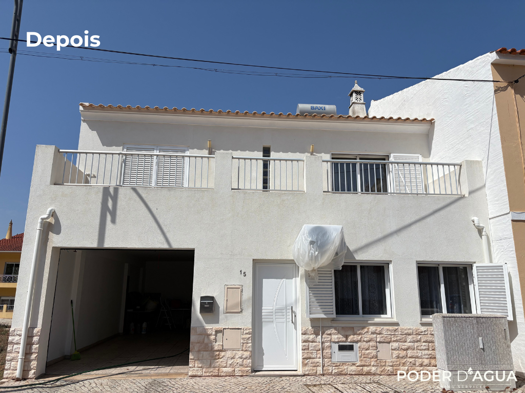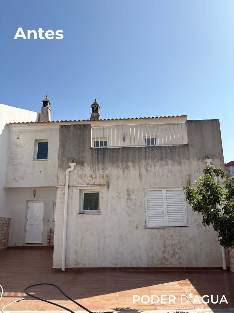 Este projeto consistiu na lavagem e tratamento de fachadas em capoto de uma moradia geminada localizada em Silves, Faro, onde realizámos uma intervenção completa para recuperar a cor original, remover sujidade acumulada e eliminar marcas de humidade e algas que são comuns no capoto. Também foi intervencionado um muro que estava em más condições, com o intuito de ser pintado posteriormente.