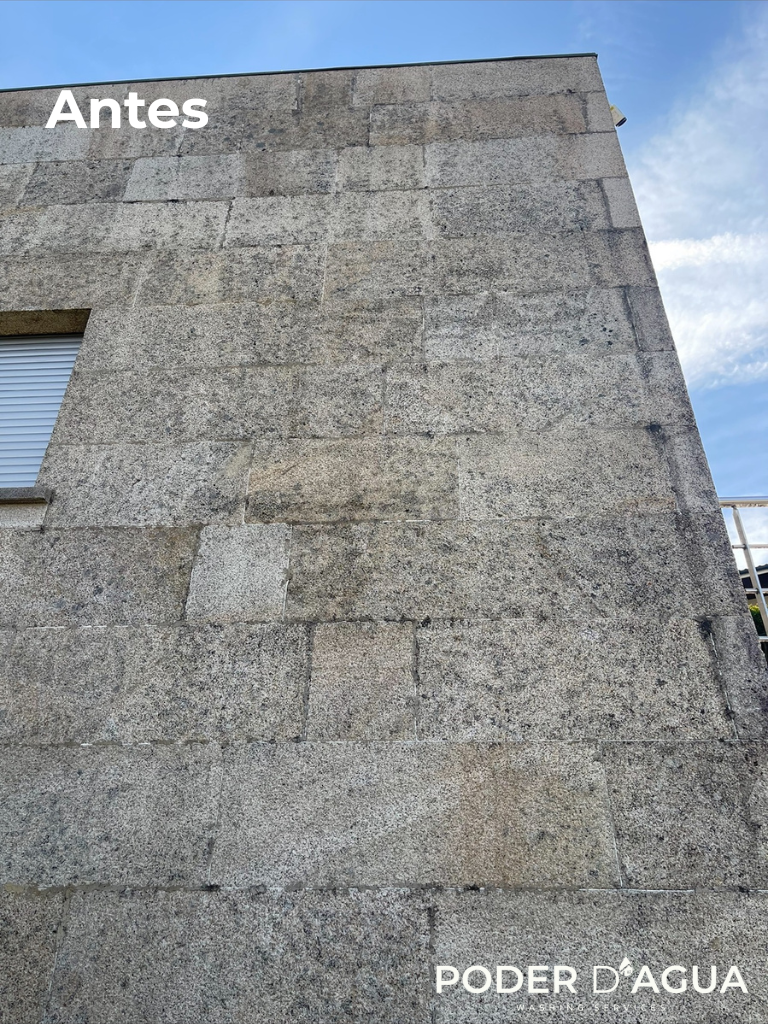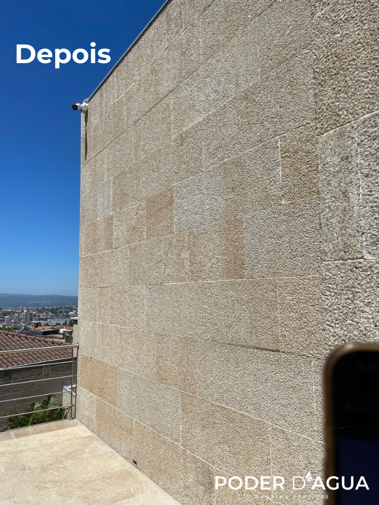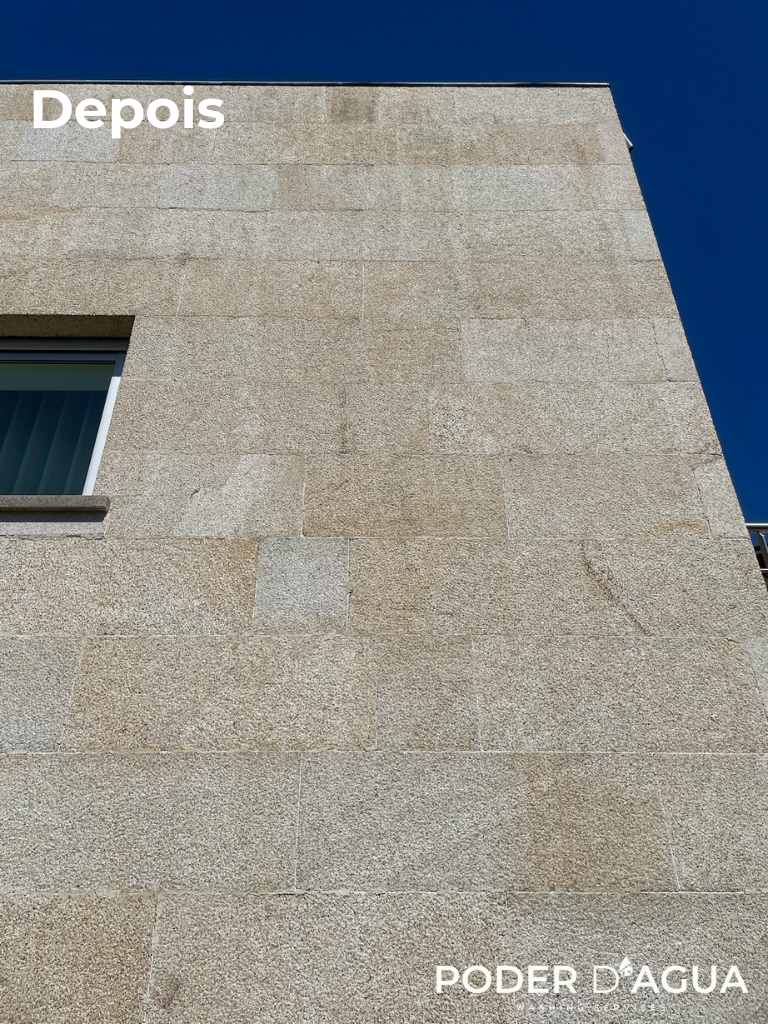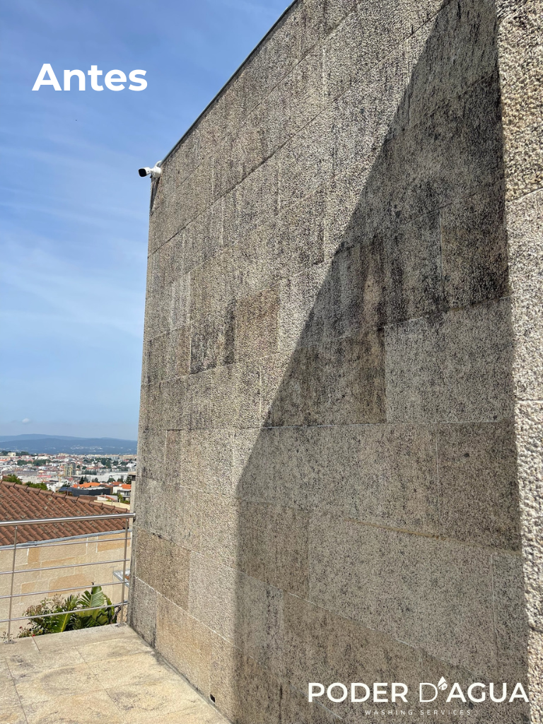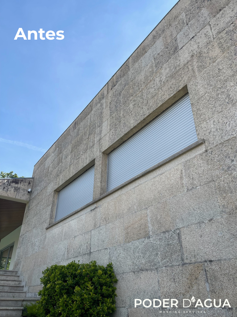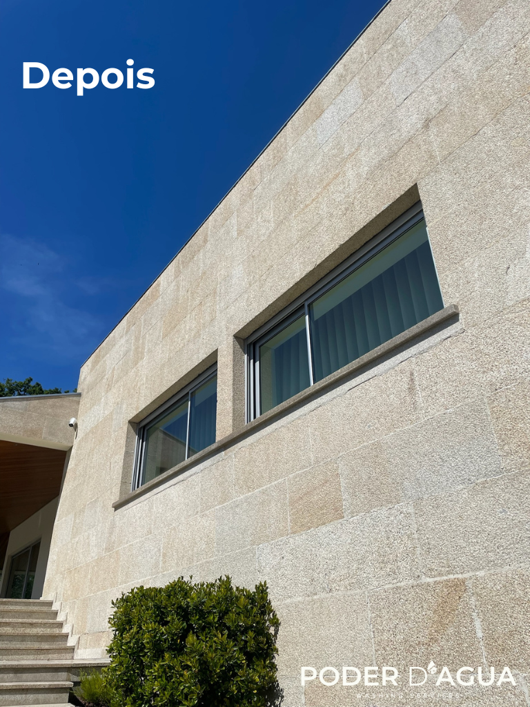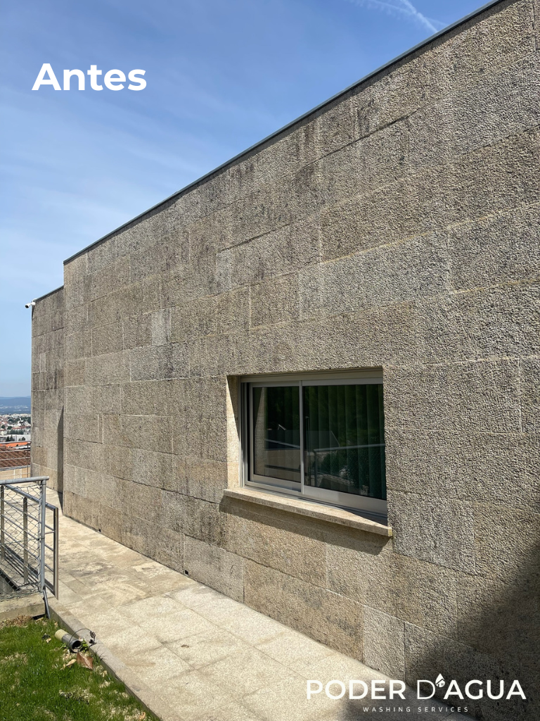 Este projeto foi realizado numa moradia no Nogueiró, Braga, onde a fachada em granito apresentava escurecimento, sujidade acumulada e marcas provocadas pela humidade e pela exposição contínua ao clima. O objetivo deste trabalho foi efetuar uma lavagem profunda das fachadas em granito, removendo sujidade incrustada, algas e manchas que estavam a comprometer a estética e a valorização da moradia. Desta forma, devolvemos ao granito a sua cor original, textura natural e aparência renovada, ao mesmo tempo que prevenimos o desgaste e a deterioração precoce da superfície.