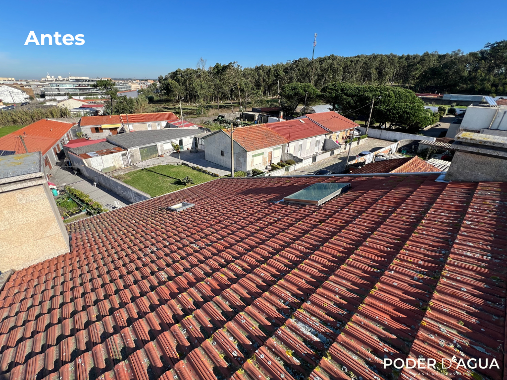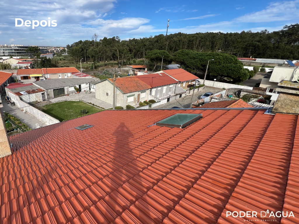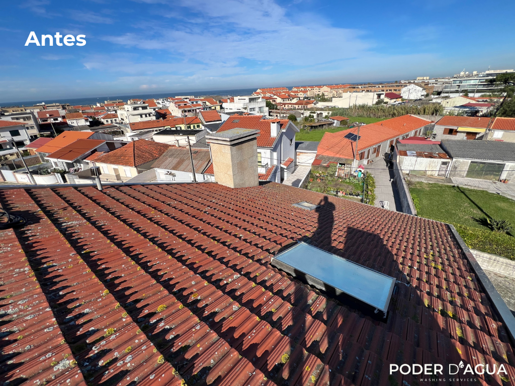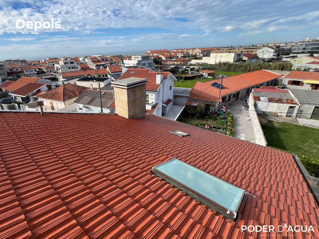 Este projeto foi realizado numa moradia no Porto, onde o telhado apresentava sujidade acumulada, escurecimento e presença de musgo devido à humidade típica da região. Por esse motivo, tornou-se essencial avançar com uma intervenção profissional que restaurasse a aparência do telhado e prevenisse degradação futura. O objetivo deste trabalho foi, assim, efetuar uma lavagem completa do telhado, removendo todos os resíduos incrustados e devolvendo às telhas a sua cor e textura originais.